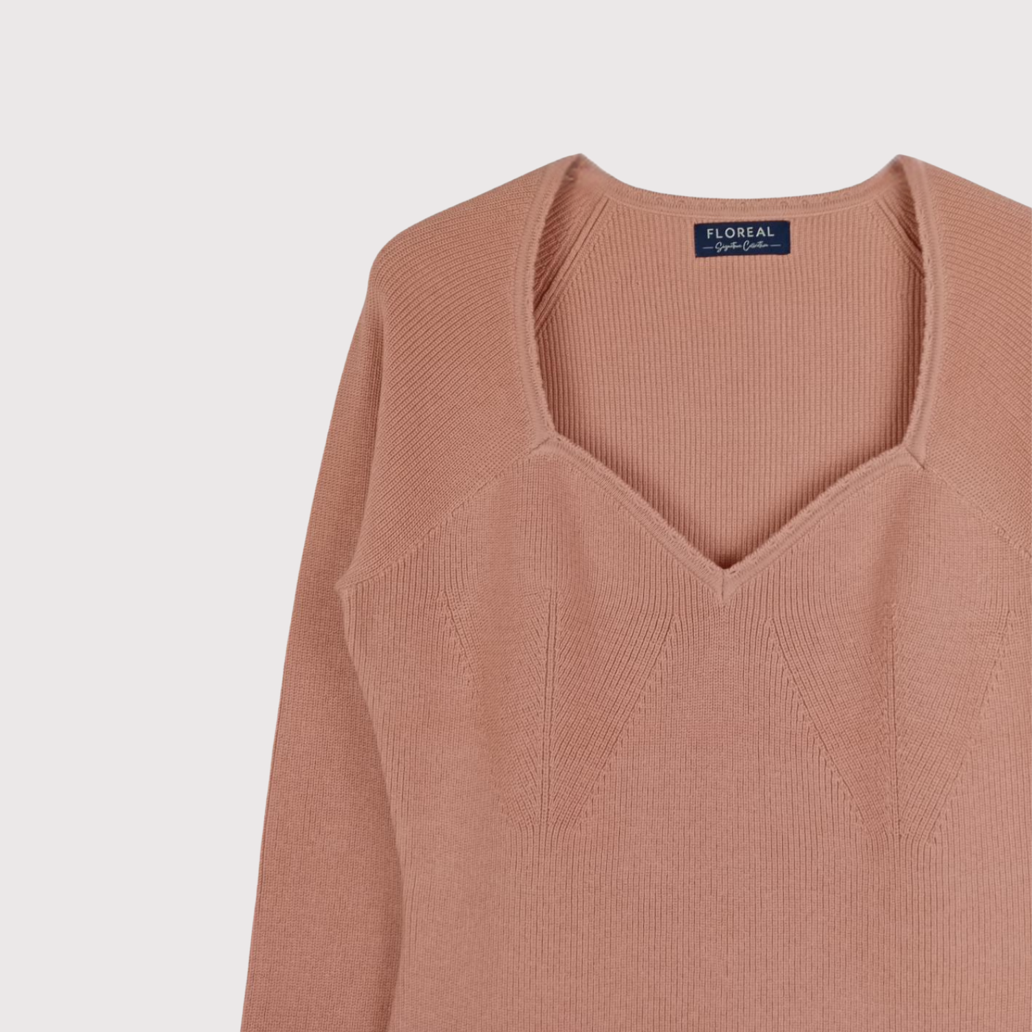 Women’s Sweetheart Neck Ribbed Knit Sweater – Dusty Rose