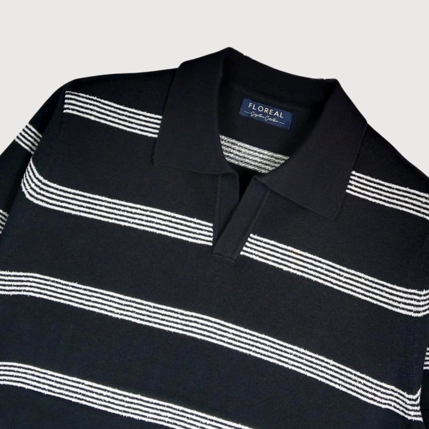Men’s Classic Striped Knit Polo – Black and White
