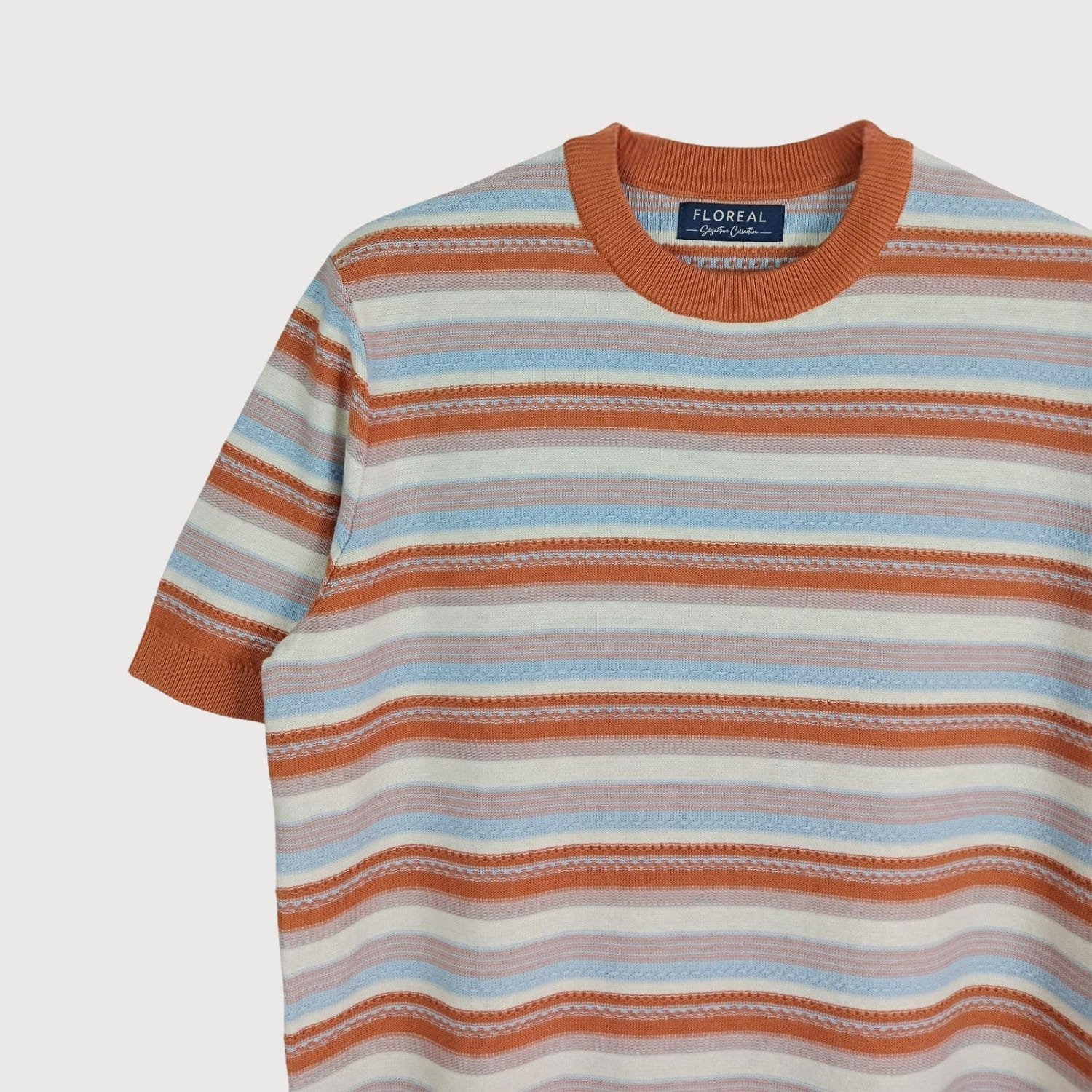 Men’s Multi-Stripe Textured Knit Tee – Terracotta and Sky Blue