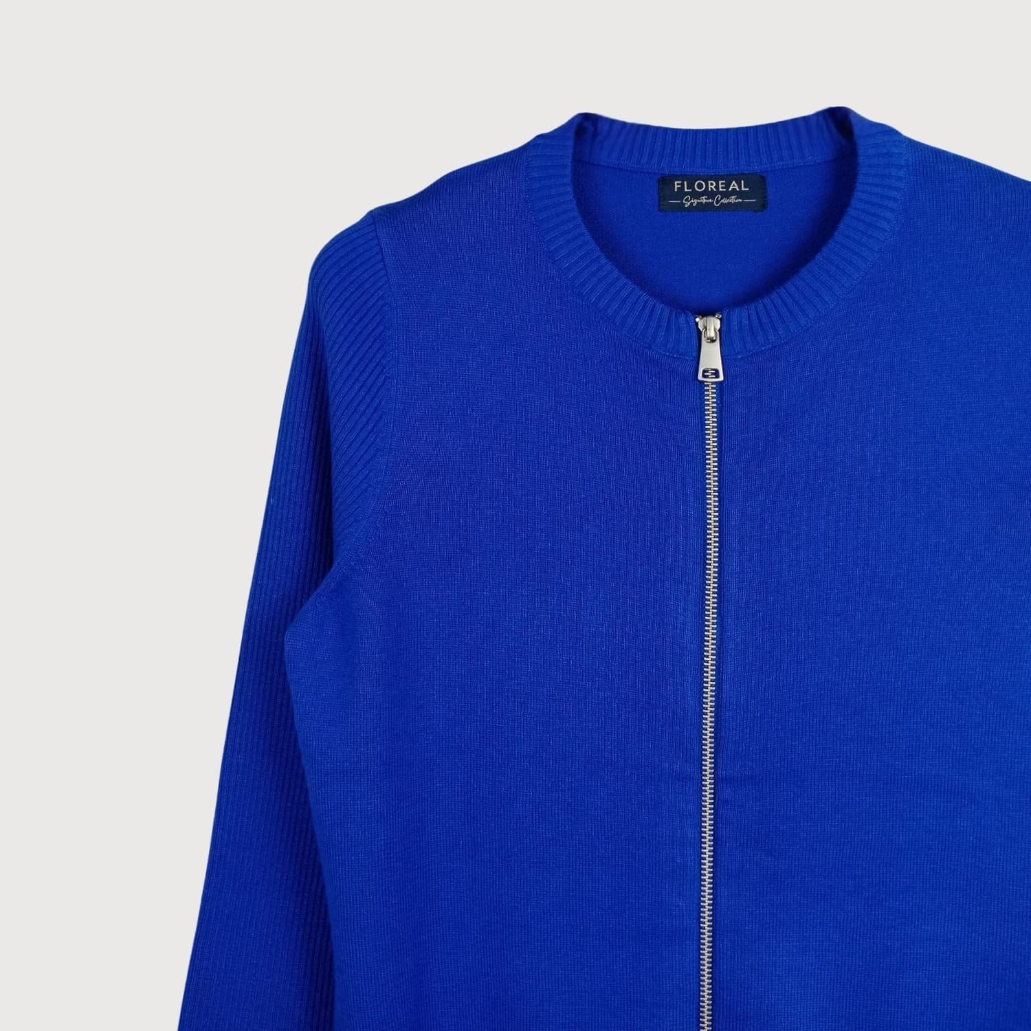 Women’s Royal Blue Rib-Accent Zip-Front Cardigan