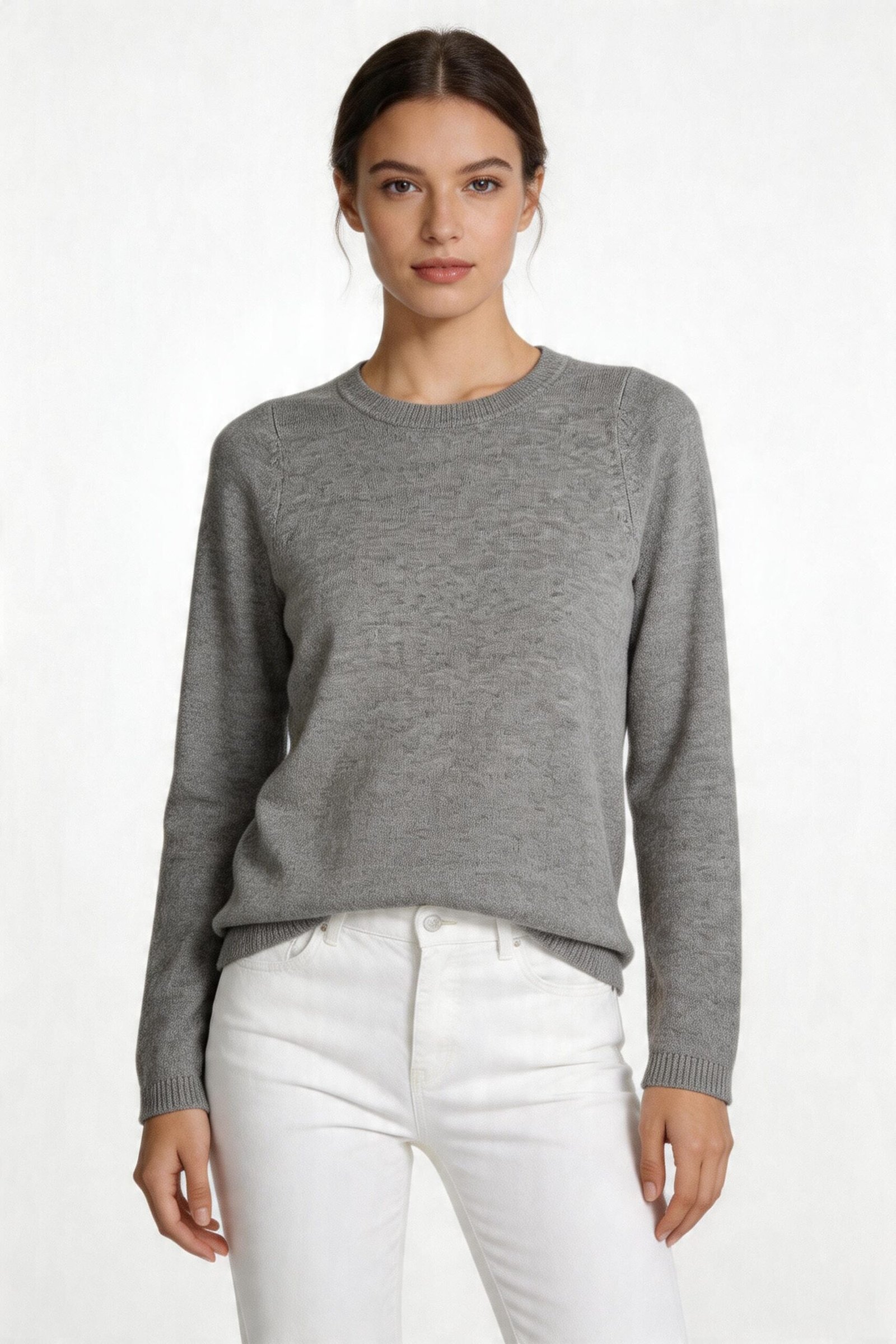 This essential crew neck sweater is crafted from a premium fine-gauge knit that offers a smooth, soft-touch feel and a lightweight silhouette. The design features raglan sleeves to provide a relaxed fit through the shoulders and maximum ease of movement, while the delicate ribbed detailing at the neckline, cuffs, and hem ensures the garment holds its shape perfectly. Its neutral heather gray tone and clean, minimalist aesthetic make it incredibly easy to style, functioning as a dependable base layer for professional outfits or a comfortable standalone piece for casual weekend wear. Engineered for durability and long-lasting comfort, this sweater is a versatile wardrobe staple that transitions seamlessly across seasons while maintaining a polished, contemporary look.